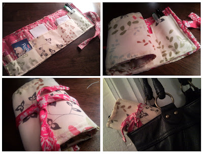 Anyway, this can hold a chapstick (of course- we girls always need a chapstick with us), those store discount cards that just fatten your usual wallet, a small notebook, important receipts, coupons, and other little notes, and of course a few pens! It rolls closed, so you can still grab your pens (and chapstick!) without opening the whole thing.. and you can just toss it in your bag, and it takes up just as much room as a normal wallet.